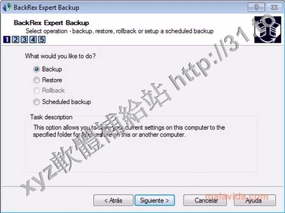 settings and much more. BackRex Expert Backup can
