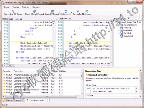 • VBConversions VB.Net to CSharp Converter v2.19 英文正式版(將vb.net代碼轉化為c#代碼的軟體)