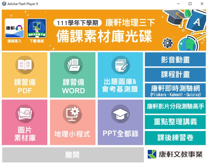 111學年下學期 國中 康軒版 地理備課資料庫 3年級(含課本、卷類資源、備課用書、習作含解答、教學輔助資源)教學光碟