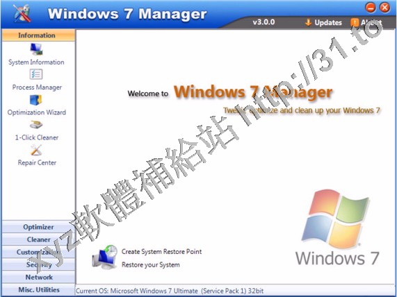 Yamicsoft Windows 7 Manager v3.0.2 英文正式版(Widnows7 總管是優化和設置軟體)